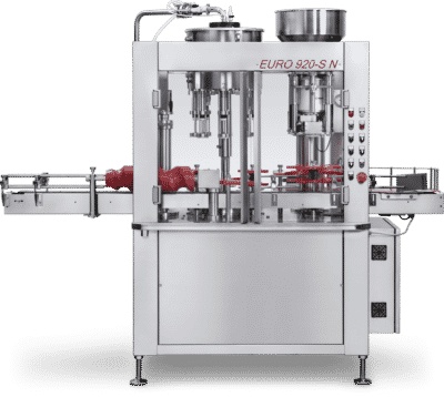 Oferujemy Państwu wysokiej jakości automatyczny monoblok EURO 920-SN OFFICINE PESCE z systemem podwójnej pre-ewakuacji składający się z nalewarki karuzelowej oraz automatycznej korkownicy.