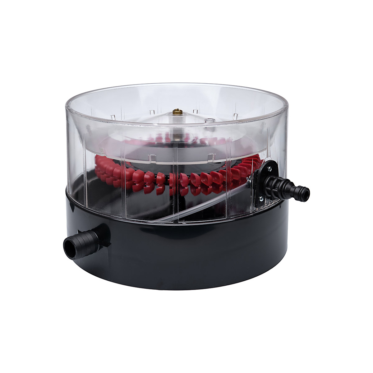 Turbinowa myjka do butelek jest niezastąpionym narzędziem do skutecznego czyszczenia butelek, kolb, pojemników i słoików wąskoszyjkowych wykonanych ze szkła. Hydrauliczna myjka do butelek z turbiną nie wymaga prądu i działa po prostu wykorzystując ciśnienie wody, które aktywuje turbinę połączoną z metalową szczotką : ruch obrotowy szczotki w połączeniu z siłą wody eliminuje wszelkie osady. Podczas mycia brudna woda jest przenoszona do wewnętrznego obwodu odpowietrzającego i odprowadzana przez dolny uchwyt węża, przy obecności drążka szczotkowego umożliwia przesuwanie butelki w pionie tak, aby zapewnić prawidłowe czyszczenie całej powierzchni. Turbinowa myjka do butelek to urządzenie o średnicy 26 cm i wysokości 52 cm , która jest w stanie zapewnić ważne wsparcie w fazach produkcji napojów, umożliwiając dezynfekcję.