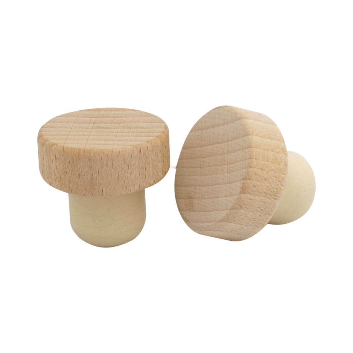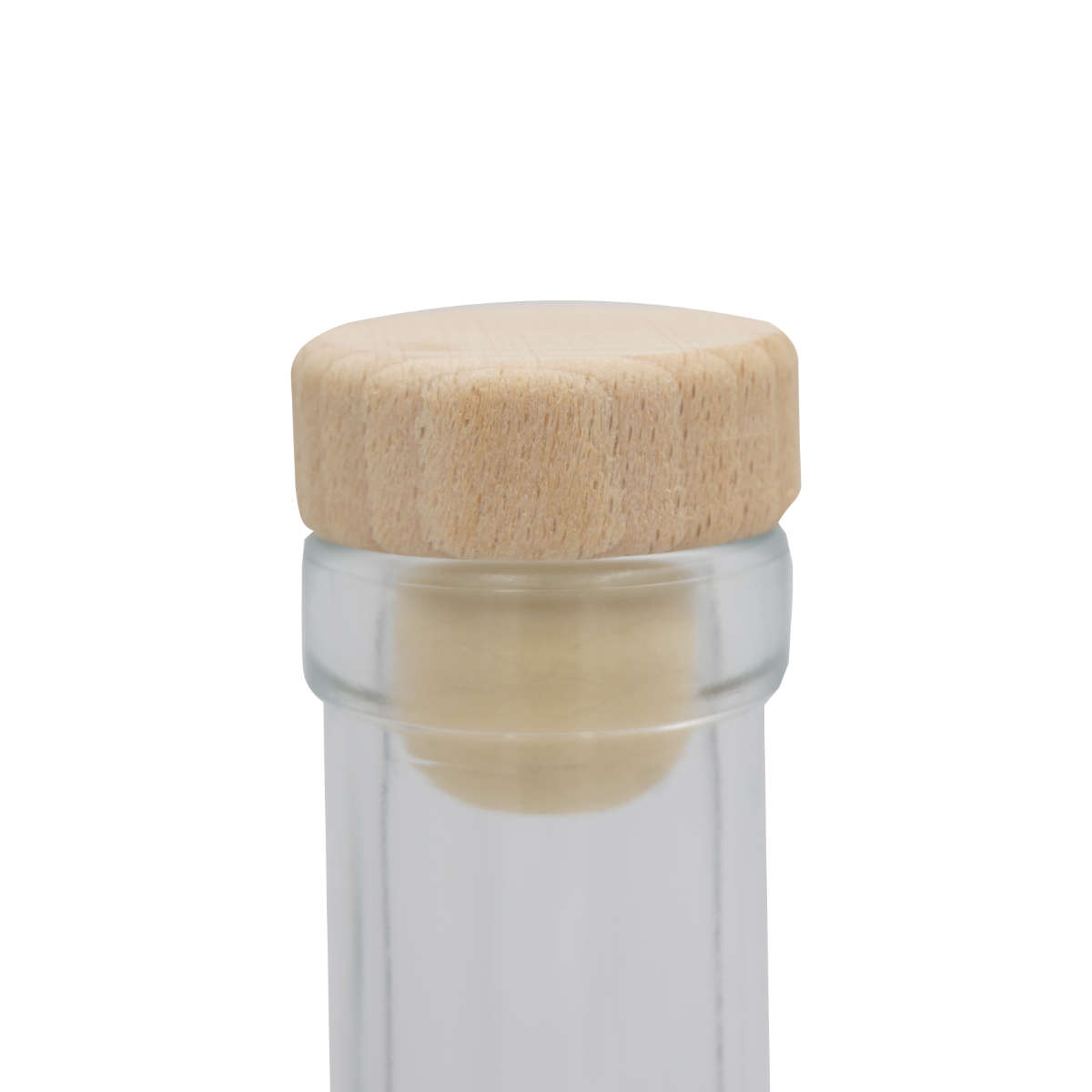 Korek z drewnianą główką i syntetycznym trzpieniem o średnicy 22,5 mm, który pasuje do większości dostępnych na rynku butelek.
