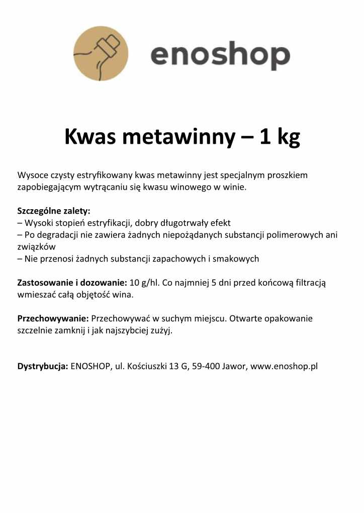 Wysoce czysty estryfikowany kwas metawinny jest specjalnym proszkiem zapobiegającym wytrącaniu się kwasu winowego w winie.