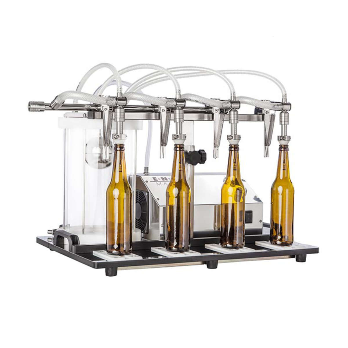 Enolmaster działa według tych samych zasad co Enolmatic. Wykorzystuje pompę próżniową do zasysania cieczy ze zbiornika do butelek. Możesz dostosować maksymalny poziom napełnienia, który po ustawieniu pozostanie niezmieniony przez cały proces napełniania. Zbiornik, z którego pobierana jest ciecz, można umieścić do 4 metrów poniżej nalewarki.