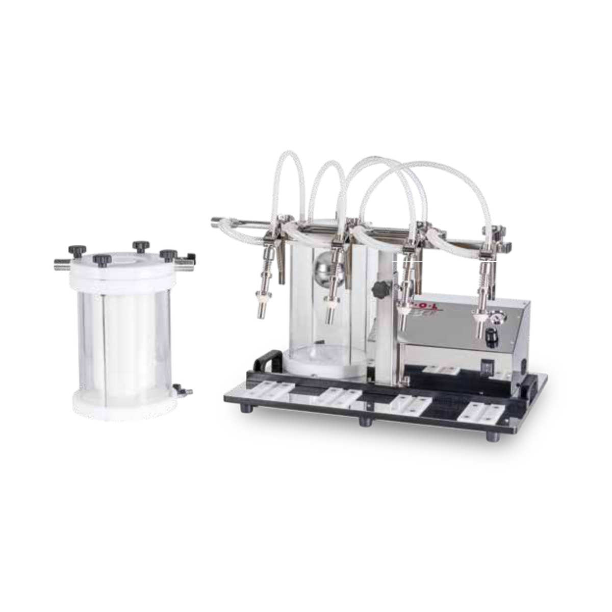 Profesjonalna obudowa filtra Tandem w połączeniu z profesjonalnym napełniaczem próżniowym Enolmaster. Maszyna wytwarza próżnię wewnątrz butelki, zasysając płyn z głównego pojemnika. Następnie ciecz jest łatwo filtrowana i butelkowana w jednej operacji.