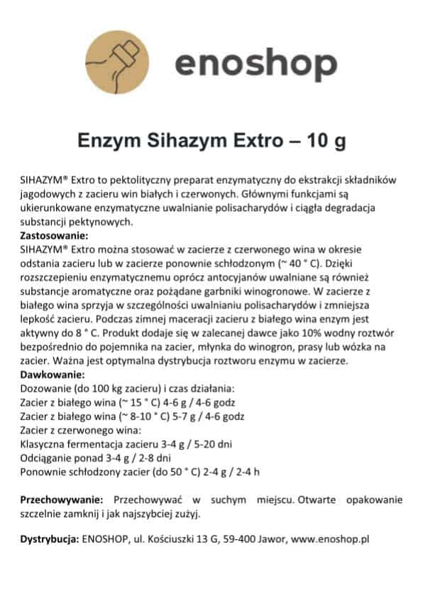 SIHAZYM Extro 10 g – enzym pektolityczny do zwiększenia wydajności tłoczenia i ekstrakcji w winach