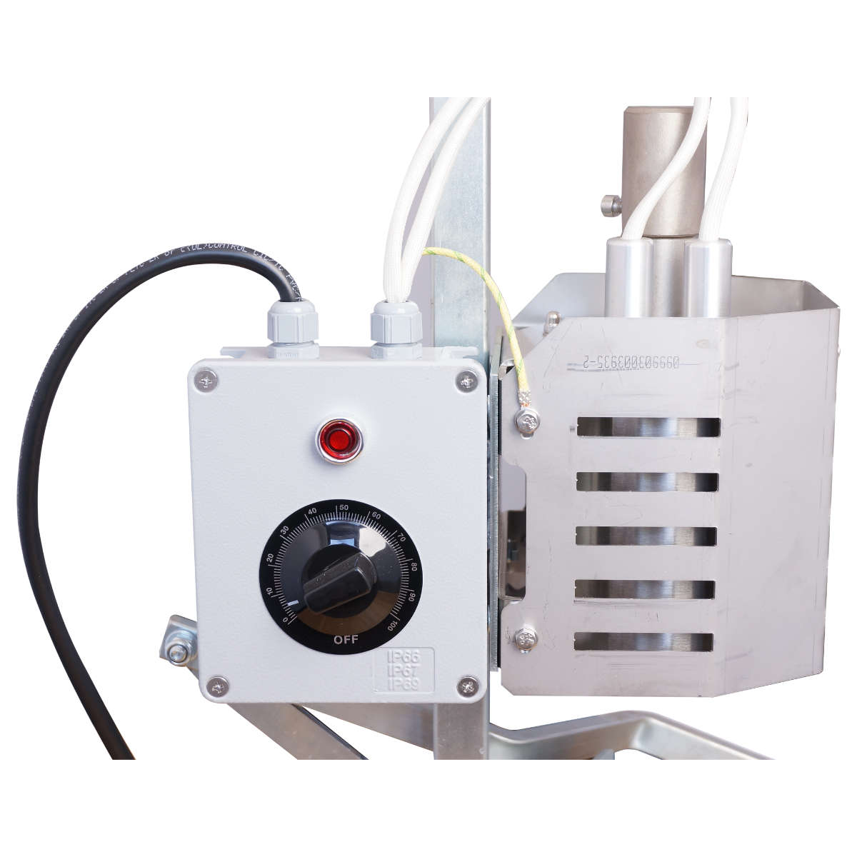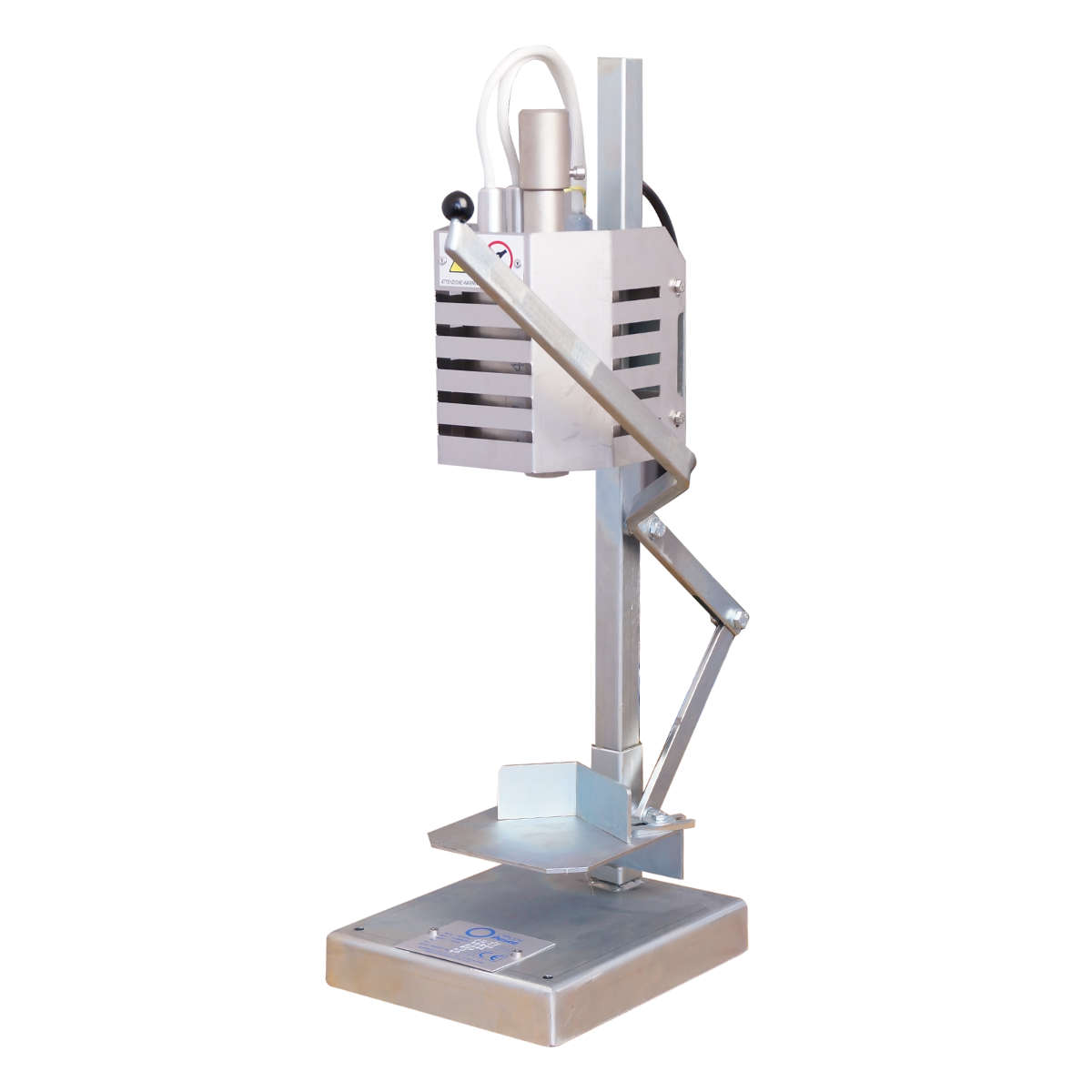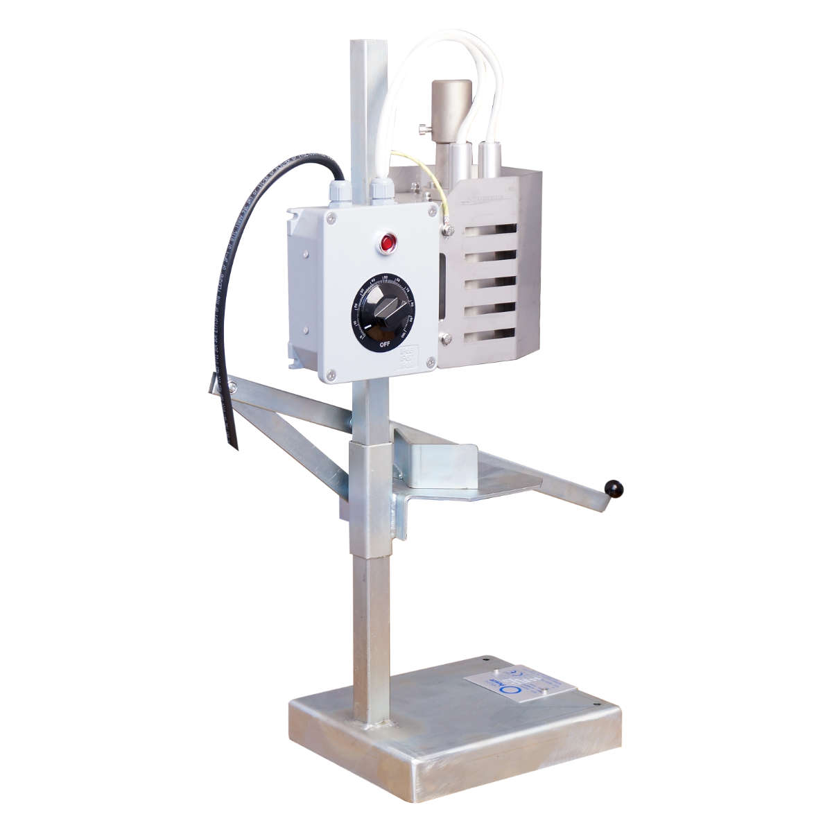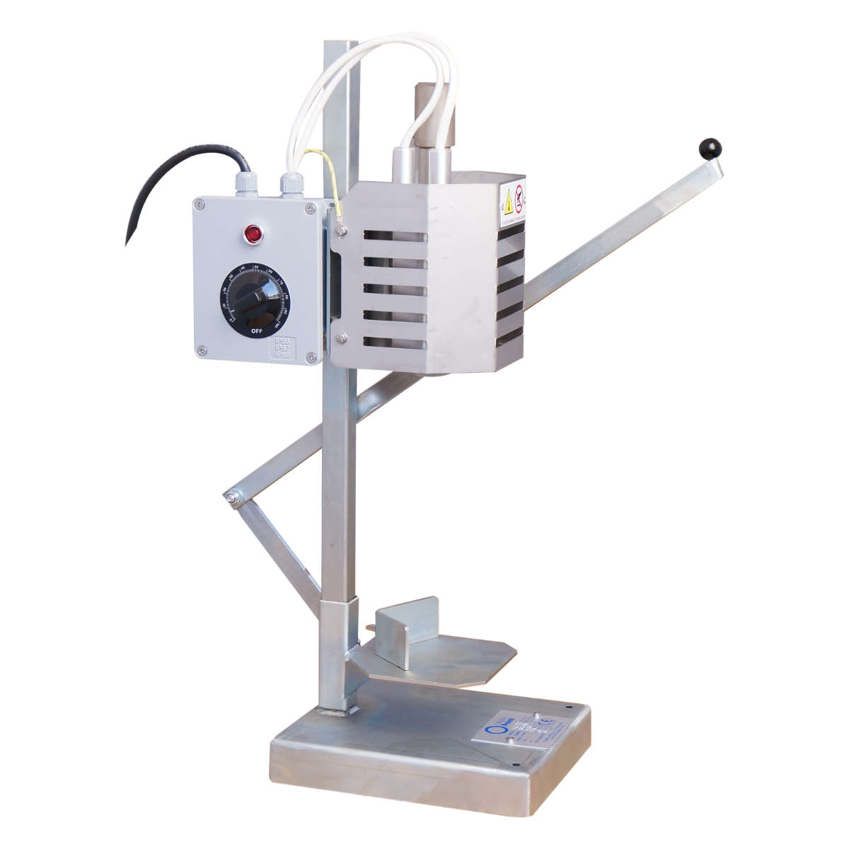 Termoobkurczarka z dźwignią i podtrzymywaniem kapturków. Urządzenie do ręcznego nakładania kapturków z regulowaną temperaturą pracy.