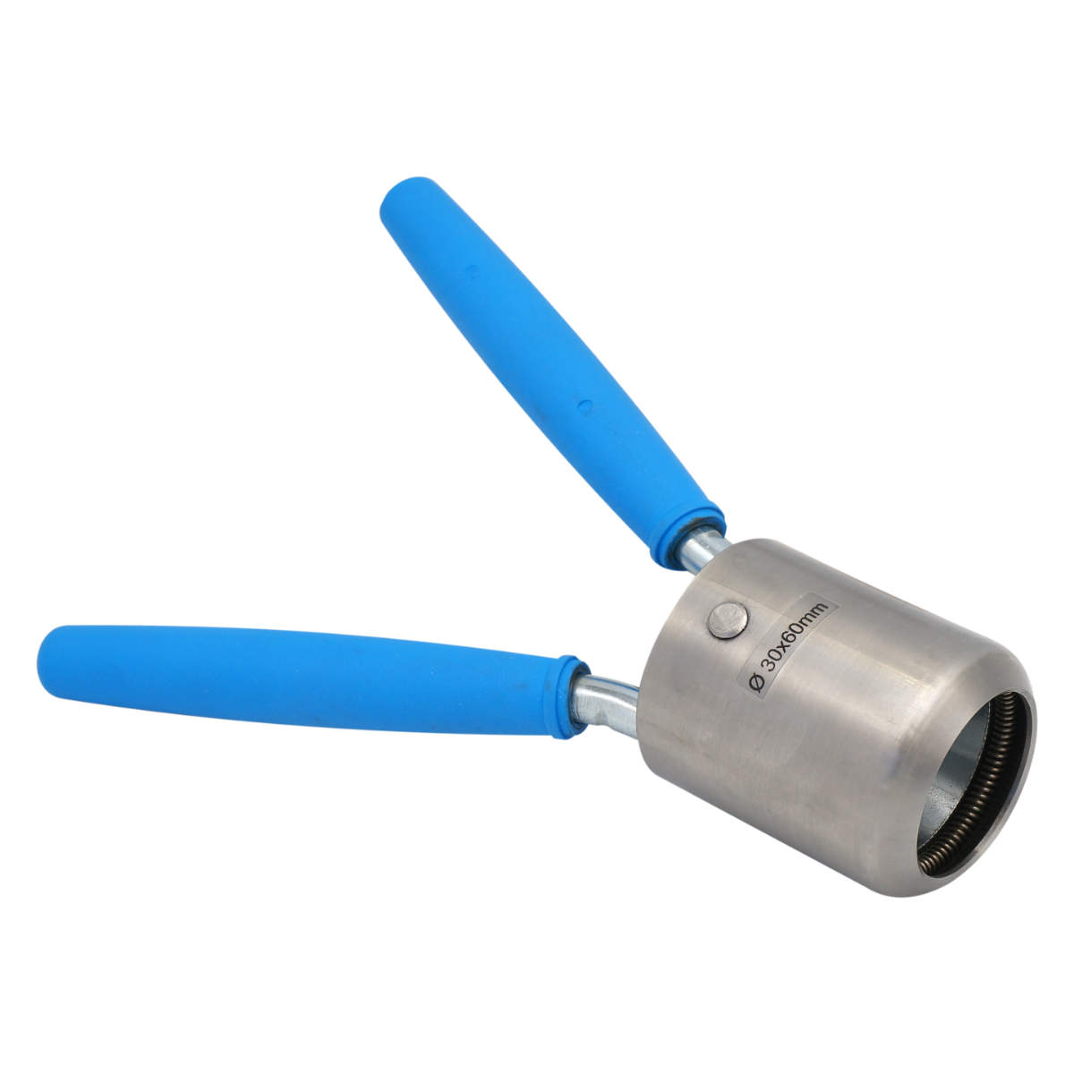 Ręczna zaciskarka do zakrętek o wymiarach 30 mm x 60 mm , która służy do zaciśnięcia pierścienia gwarancyjnego.