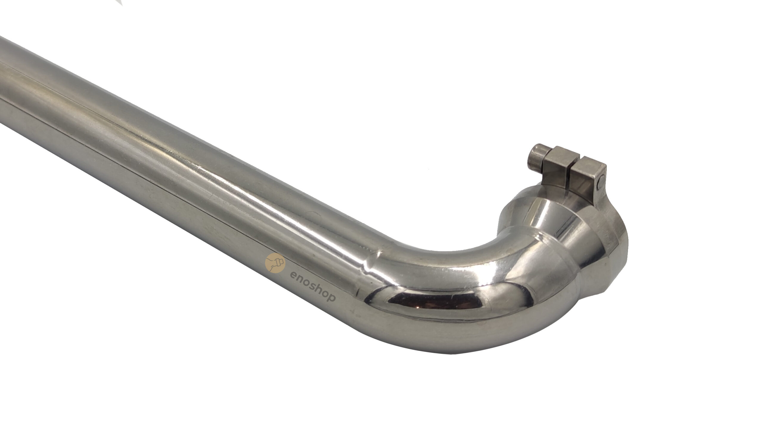 Oferowany dekanter dedykowany jest do zbiorników ze stali nierdzewnej wyposażonych w przyłącze zaworu czystego wypróżnienia w standardzie DIN 11851 i rozmiarze DN 40. Istotą jego działania jest wybór poziomu, z którego pobierany jest produkt ze zbiornika dzięki czemu możliwe jest precyzyjne zlewanie płynu znad osadu. Położenie końca rury dekantera można regulować za pomocą dźwigni i zablokować nakrętką. Zestaw składa się z dwóch części: kolana i zaworu regulacji położenia. Zawór regulacyjny należy zamontować pomiędzy zaworem spustowym, a przyłączem zbiornika. Kolano natomiast należy włożyć do zbiornika z zewnątrz, założyć i przykręcić na zamontowany uprzednio króciec będący częścią zaworu regulacyjnego – z pewnością pomocny okaże się właz inspekcyjny w zbiorniku. Połączenie kolana z króćcem zaworu uszczelnione jest o-ringiem i blokowane obejmą dokręcaną przy pomocy klucza imbusowego. Położenie kolana względem dźwigni zaworu można dowolnie regulować przed dokręceniem śruby mocującej kolano w zbiorniku. Na króćcu zostało oznaczone miejsce do którego powinno zostać wciśnięte kolano.