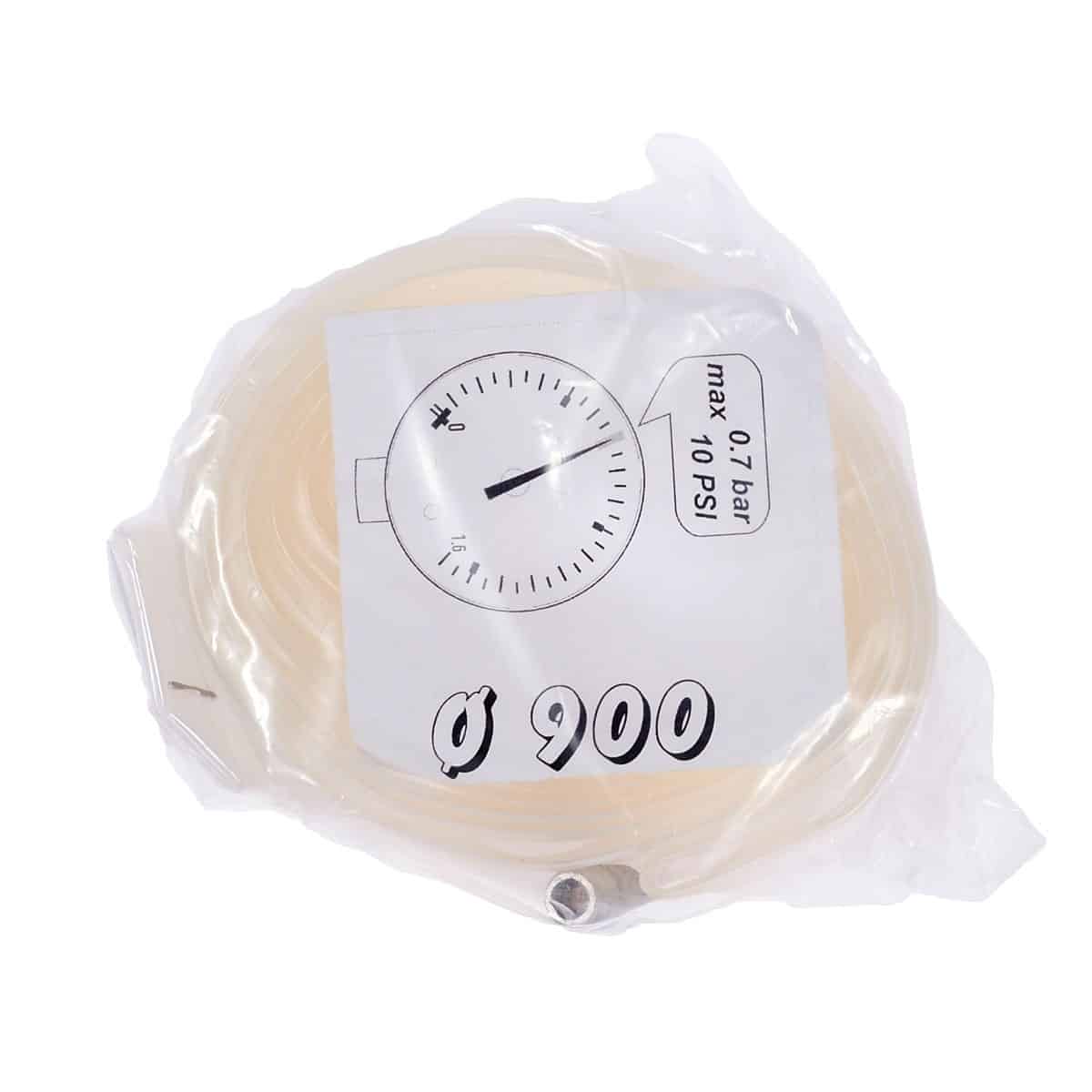 Przezroczysta uszczelka pneumatyczna – dętka o średnicy 900 mm do zbiorników fermentacyjnych typu otwartego Profesjonalna uszczelka pompowana stanowiąca kluczowy element systemu uszczelniającego pokrywy zbiorników fermentacyjnych i leżakowych tupu otwartego. Zapewnia jednocześnie stabilne utrzymanie pokrywy na wybranej wysokości oraz szczelne odizolowanie zawartości zbiornika od otoczenia. Specyfikacja techniczna:
