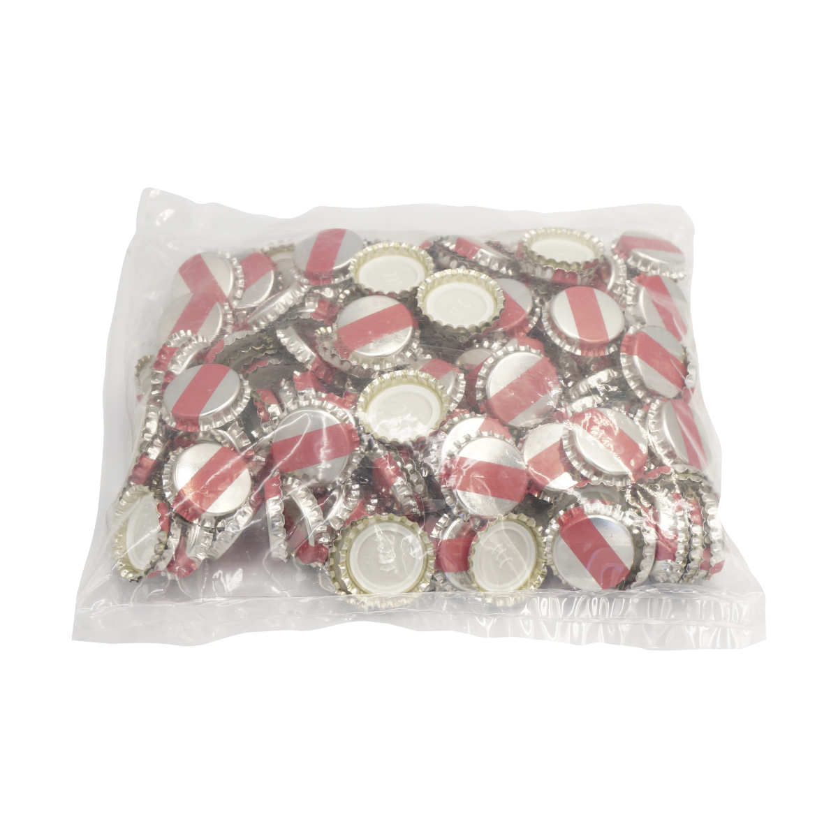 Kapsle szampańskie 29 mm w srebrnym kolorze z różowym paskiem  to praktyczne rozwiązanie dla producentów poszukujących szczelnego, elastycznego i ekonomicznego zamknięcia do refermentacji napojów musujących.