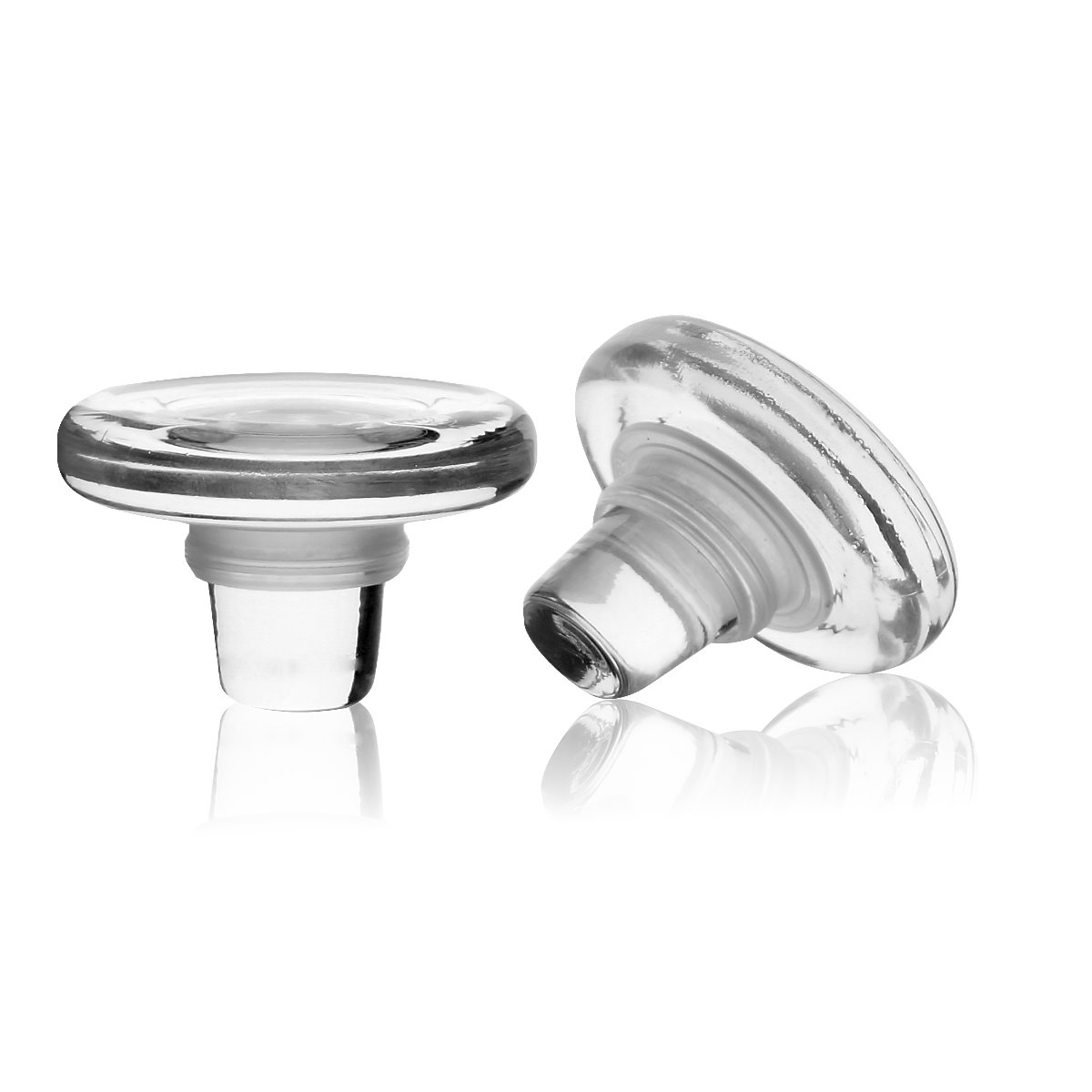 Korek wykonany jest z wysokiej jakości bezbarwnego szkła, które nie jest malowane ani powlekane. Jego trwałość i estetyka wynikają wyłącznie z czystości materiału oraz precyzji wykonania. Neutralne materiały zastosowane w zamknięciu nie wpływają na smak ani aromat alkoholu, co czyni ten model idealnym wyborem zarówno dla win, jak i alkoholi wysokoprocentowych.