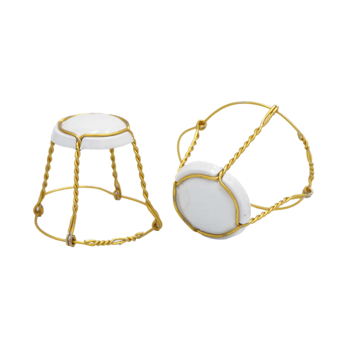 Koszyczki szampańskie blaszka BIAŁA, drut ZŁOTY – standard premium dla trunków musujących