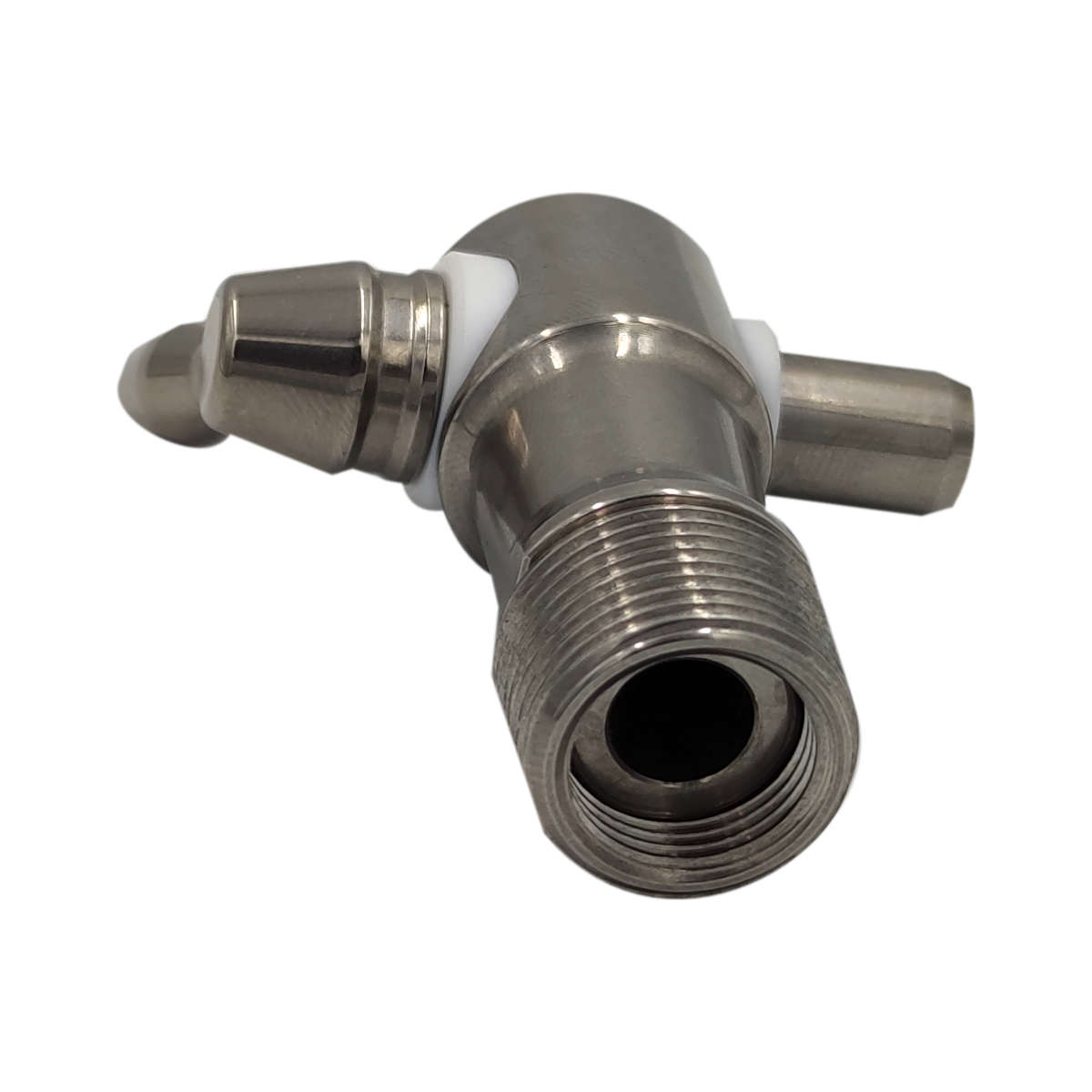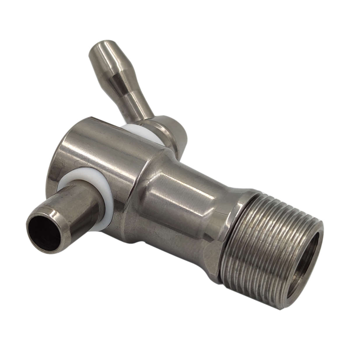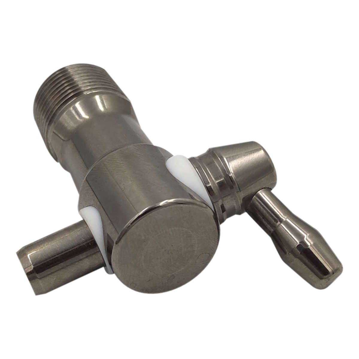 Oferowany kranik dedykowany jest do beczek drewnianych – zakończony jest gwintem stożkowym. Ze względu na niewielką średnicę wewnętrzną oraz brak drugiego przyłącza, jego głównym zastosowaniem jest pobieranie próbek. Kierunek montażu z perspektywy przyłącza: poziomy Średnica gwintu 1: 21 mm Średnica gwintu 2: 22 mm Długość gwintu: 15 mm Skok gwintu: 1,5 mm Średnica wewnętrzna: 8 mm Długość pokrętła (od osi obrotu): 25 mm Długość całkowita (bez pokrętła): 60 mm Średnica zewnętrzna (z przodu): 23,5 mm Kąt obrotu rączki: 360° Pozycja otwarta: w przód Stal nierdzewna z gatunku 1.4301 charakteryzuje się dużą odpornością na ogólną korozję, przez co doskonale nadaje się do stosowania przy produktach spożywczych i alkoholach.