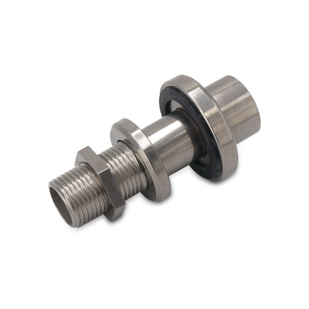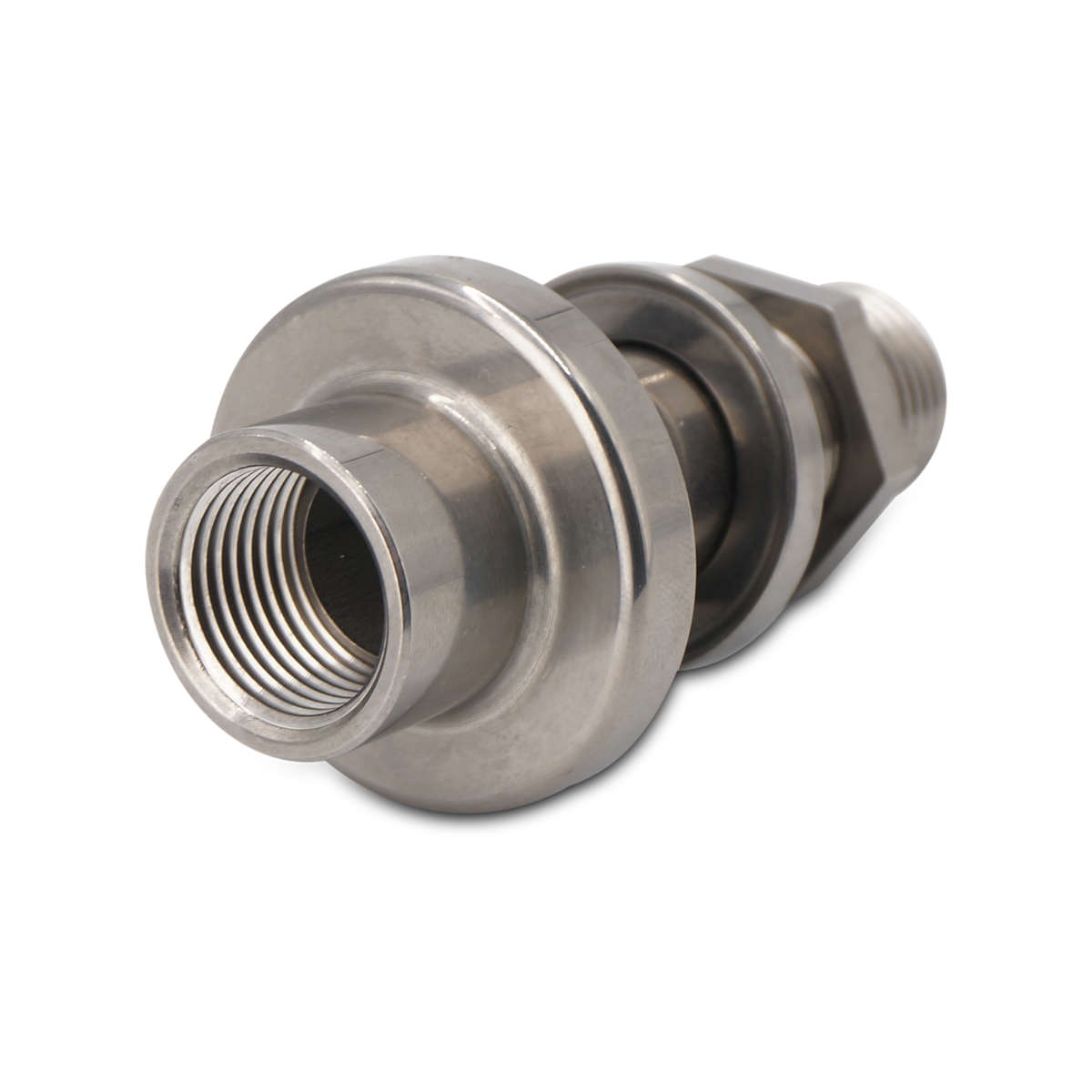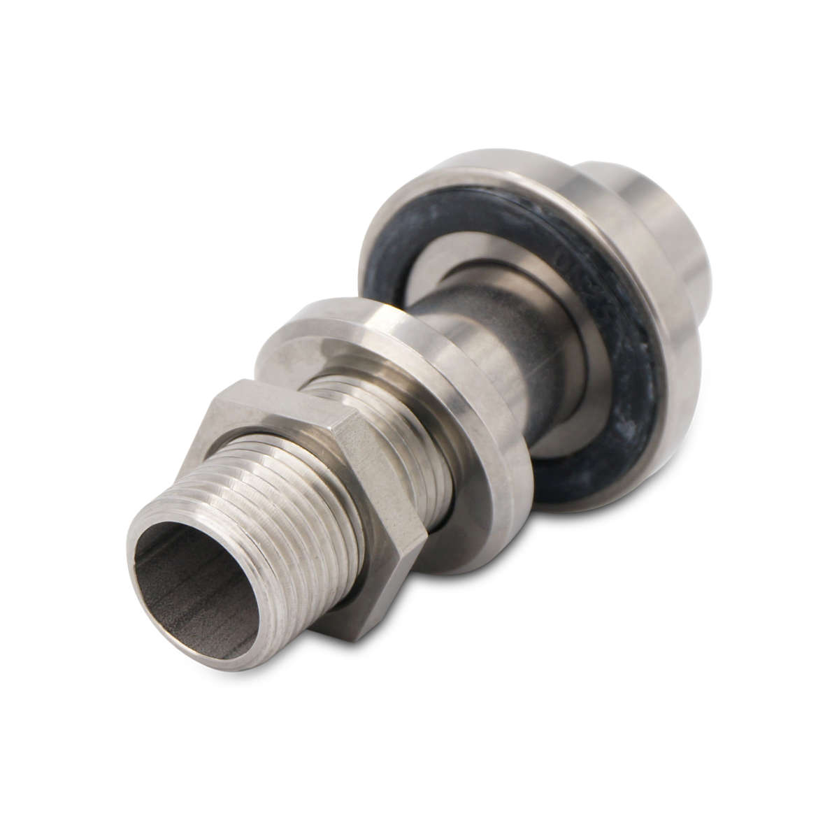 Solidny adapter ze stali nierdzewnej AISI 304, umożliwiający bezpieczne zamontowanie armatury w beczce – np zaworów, końcówek do węży itp.