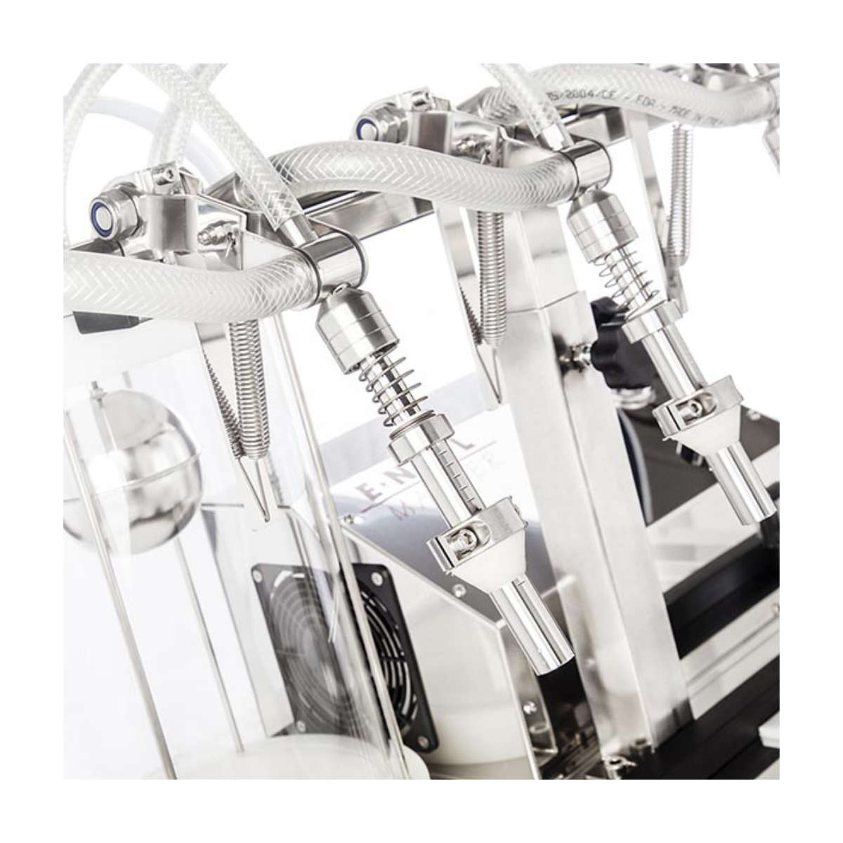 Enolmaster działa według tych samych zasad co Enolmatic. Wykorzystuje pompę próżniową do zasysania cieczy ze zbiornika do butelek. Możesz dostosować maksymalny poziom napełnienia, który po ustawieniu pozostanie niezmieniony przez cały proces napełniania. Zbiornik, z którego pobierana jest ciecz, można umieścić do 4 metrów poniżej nalewarki.