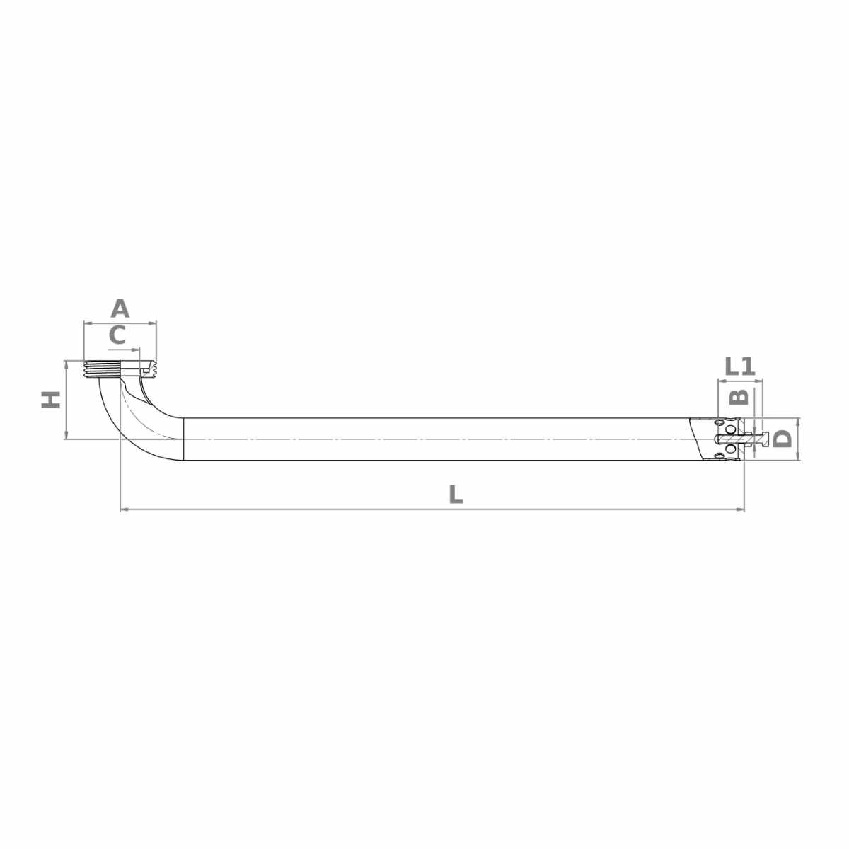 Zakres regulacji wysokości pobierania to ok. 20 – 48 mm od dna zbiornika. W takim zakresie regulacji można dokonać za pośrednictwem śruby na której będzie opierało się ramię. Zakończenie: A = końcówka gwintowana DIN11851 DN32 Śruba regulacyjna: B = M8 Długość śruby: L1 = 40 mm Średnica wewnętrzna rury: C = 32 mm Średnica zewnętrzna rury: D = 38 mm Długość: L = 761 mm Wysokość: H = 70 mm Do prawidłowego montażu konieczna jest uszczelka DN32 Stal nierdzewna z gatunku 1.4307 charakteryzuje się dużą odpornością na ogólną korozję, przez co doskonale nadaje się do stosowania przy produktach spożywczych i alkoholach. Do pracy przy agresywnych środkach chemicznych zalecamy wybór stali kwasoodpornej z gatunku 1.4404 (AISI 316L).